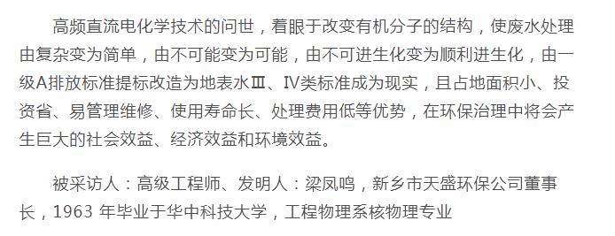 中國高新技術(shù)網(wǎng)發(fā)布:《關(guān)注:解碼科技創(chuàng)新》——新鄉(xiāng)市天盛環(huán)?!俺瑥娧趸€原廢水處理技術(shù)”