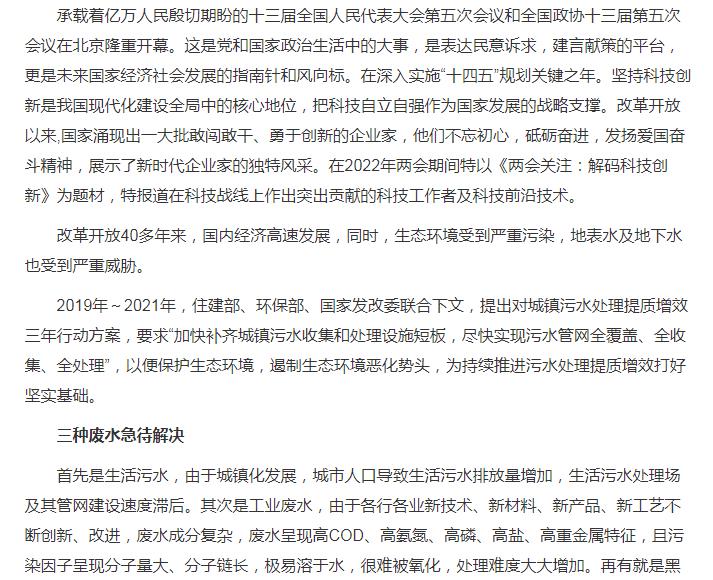 今日頭條刊登:喜迎二十大|超強(qiáng)氧化還原(CYH法)技術(shù),使污水處理再無后顧之憂